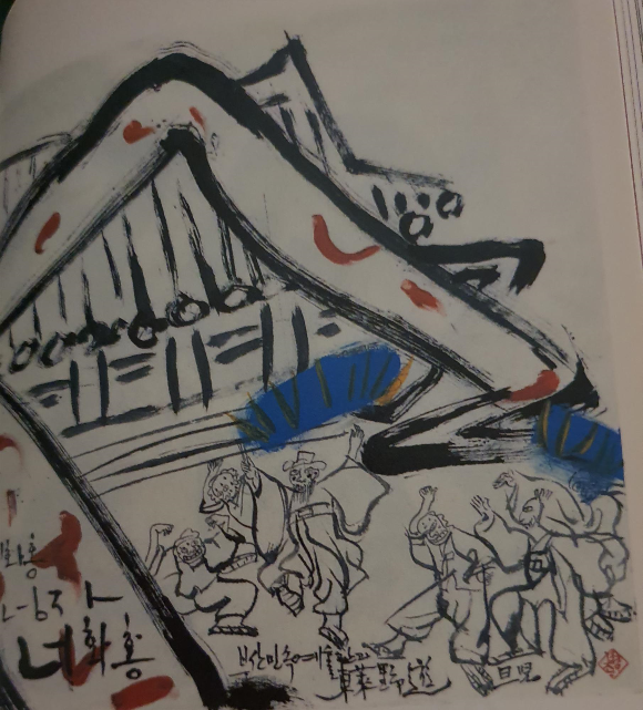 (280)낙동강 700리의 윗물에 안동벌 하회탈춤이, 끝물에 동래야류가 있다. 동래야류는 가무음극이 어우러진 토종 오페라다.