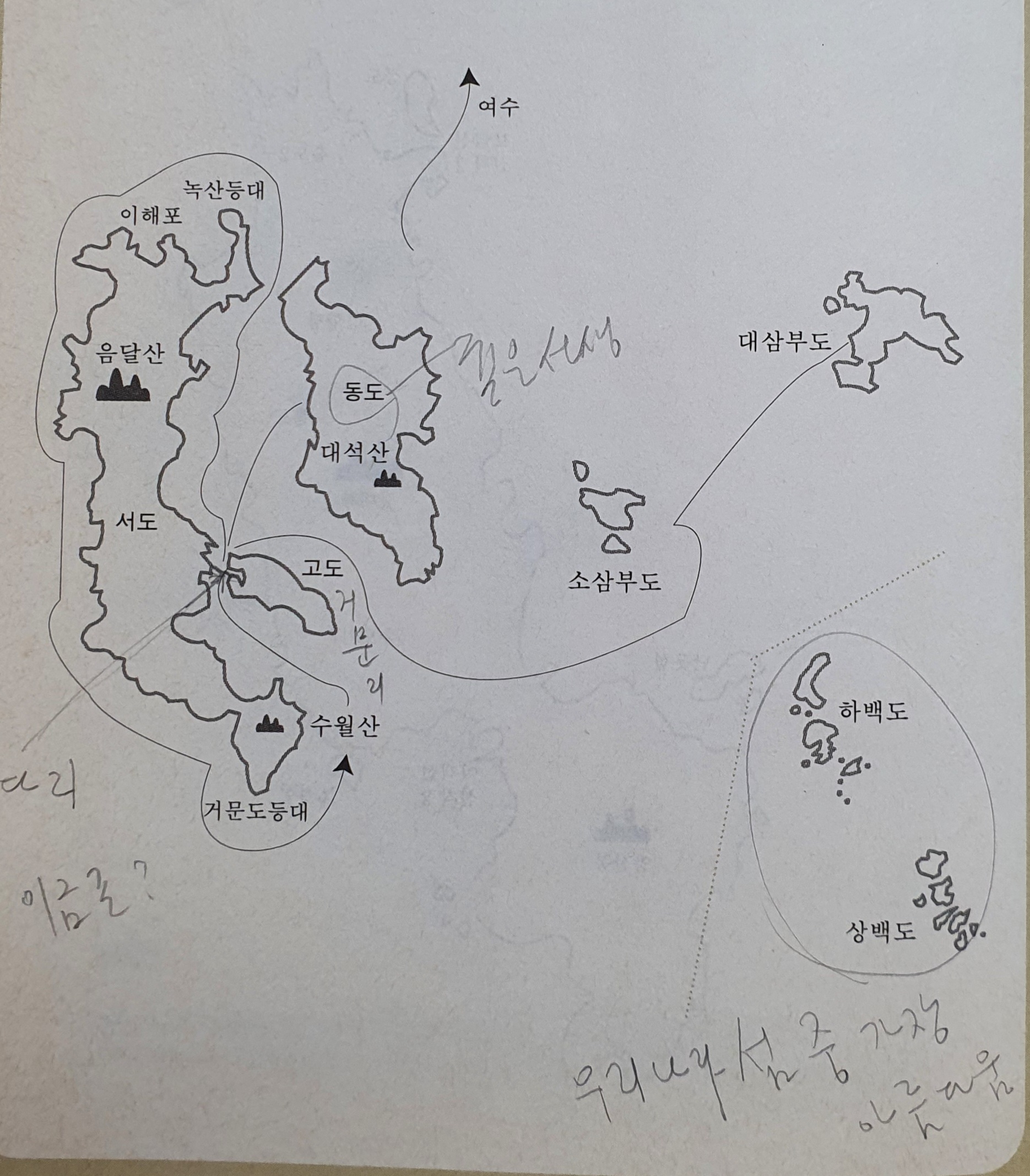 (154)거문도라는 독립된 섬은 없다. 동도ㆍ서도ㆍ고도 셋을 묶어서 삼산면이라 하고, 이중 고도를 거문리라 한다.사람들은 고도만 다녀가고 거문도에 갔다왔다고 한다.